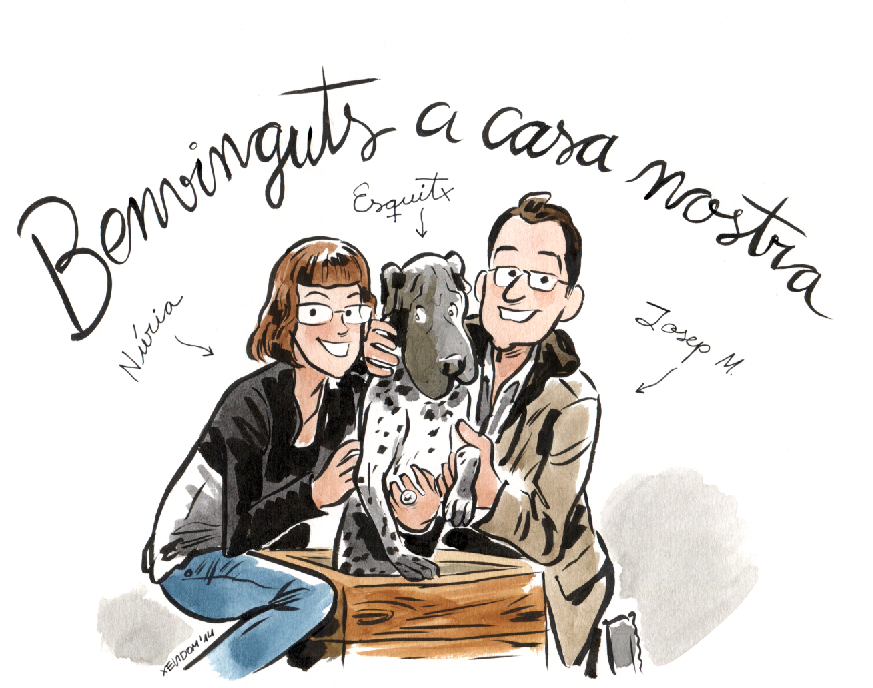 Per què us feu una mica una idea, us deixem el conte personalitzat a mida que ens va encarrega la Núria. En el seu cas, ella ja tenia un text escrit que nosaltres vam distribuir en les pàgines i llavors, a partir de les fotos d’ella i la seva parella, vam fer il·lustracions exclusives a la portada i a totes les pàgines del conte. La nostra estructura dels nostres contes personalitzats, són 20 pàgines imprimides en paper d’alta qualitat, atenció i AMB TAPA DURA i mides de 21cmx21cm, un senyor conte personalitzat a mida, que regalareu a aquella persona o persones especials.